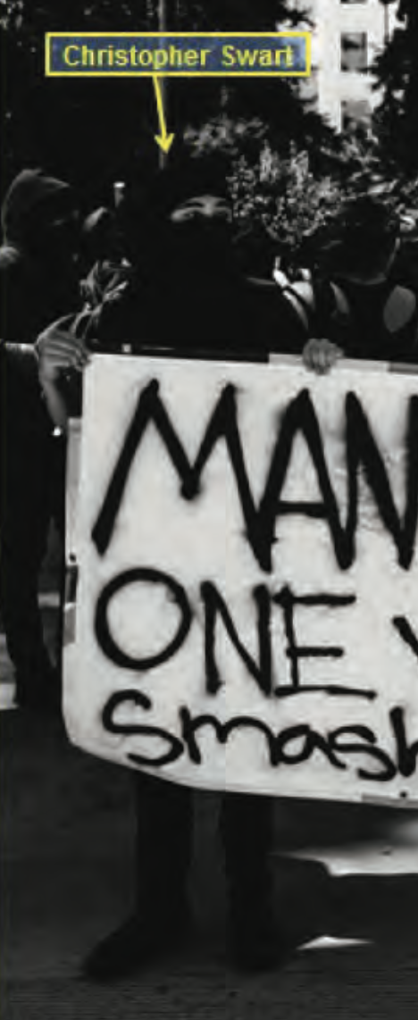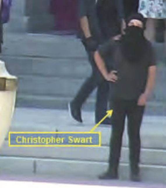 According to a 2016 criminal investigation by the California Highway Patrol recently obtained by the William McKinley Institute, Christopher David Swart ""arrived at the California State Capitol to support a planned action to deny the Traditionalist Worker Party (TWP) from assembling and speaking at their event." Birthdate: 9/8/1991 https://wmkinstitute.com/chps-2000-page-report-on-2016-sacramento-capital-anti-white-antifa-terrorist-attack/ https://wmkinstitute.com/chp-helicopter-footage-of-the-2016-premeditated-anti-white-attack-in-sacramento/ https://wmkinstitute.com/the-torch-antifa-network-the-anarcho-terrorist-syndicate/