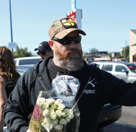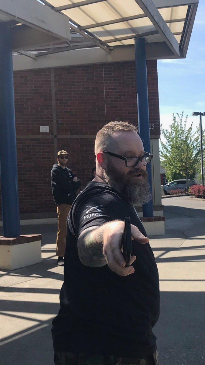 https://www.npr.org/2020/07/23/893533916/i-am-antifa-one-activist-s-violent-death-became-a-symbol-for-the-right-and-left Founder Duke Aaron greets members of the Puget Sound John Brown Gun Club. In 2017, van Spronsen was the club's first recruit.