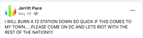 https://www.justice.gov/usao-or/pr/seven-arrested-facing-federal-charges-after-weekend-riots-hatfield-federal-courthouse Jerritt Jeremy Pace, 39, of Washington, D.C., was indicted today by a federal grand jury, charging him with multiple offenses related to his attempt to burn down a police precinct, announced Acting U.S. Attorney Michael R. Sherwin Pace was arrested on May 29, 2020. On June 11, 2020, Pace was charged by Criminal Complaint with receiving an explosive in interstate commerce, using an instrumentality of interstate commerce to threaten the use of explosives, and attempted arson https://www.courtlistener.com/docket/17298744/united-states-v-pace/