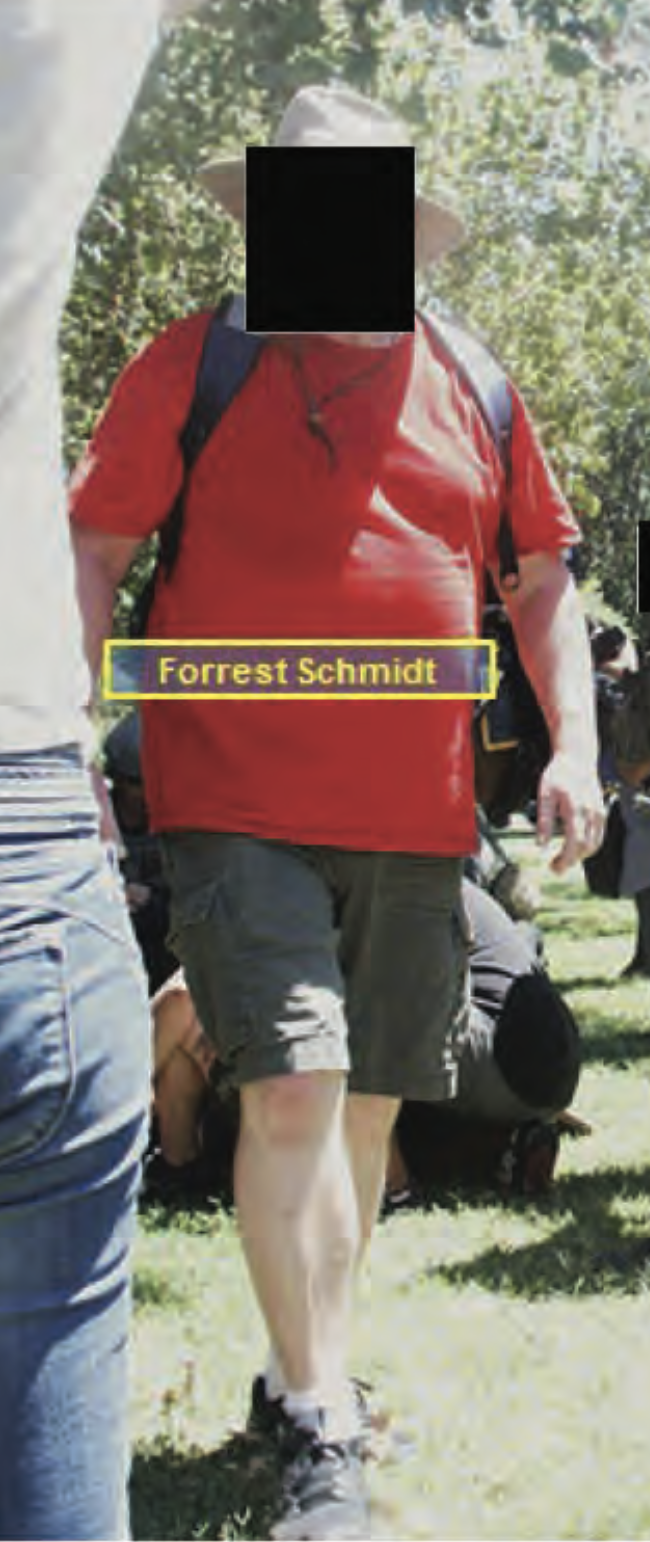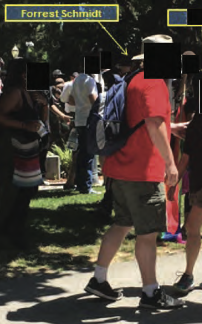 According to a 2016 criminal investigation by the California Highway Patrol recently obtained by the William McKinley Institute, Forrest Michael Schmidt ""arrived at the California State Capitol to support a planned action to deny the Traditionalist Worker Party (TWP) from assembling and speaking at their event." Birthdate: 8/1/1976 https://wmkinstitute.com/chps-2000-page-report-on-2016-sacramento-capital-anti-white-antifa-terrorist-attack/ https://wmkinstitute.com/chp-helicopter-footage-of-the-2016-premeditated-anti-white-attack-in-sacramento/ https://wmkinstitute.com/the-torch-antifa-network-the-anarcho-terrorist-syndicate/ He's a big boy, weighing in at 250 lb. He doesn't have any serious criminal charges, but he was cited for driving in excess of 100 mph. Schmidt's last known address is in San Francisco, but he's lived in Oakland and Alameda in the Bay Area