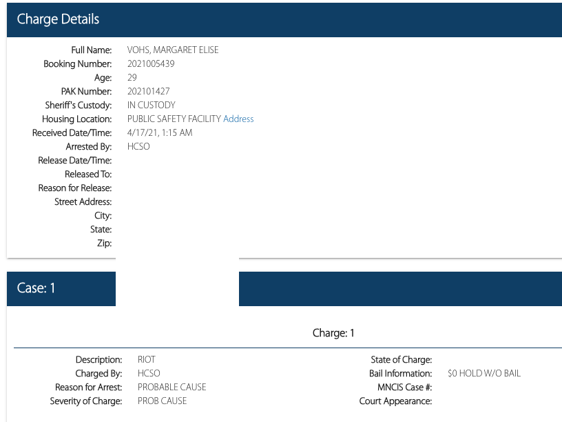 Arrested during the Brooklyn Center (Minneapolis) Minnesota Riots between 4.12 and 4.17