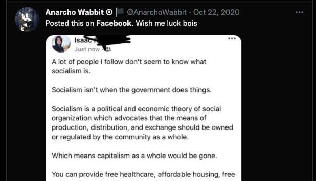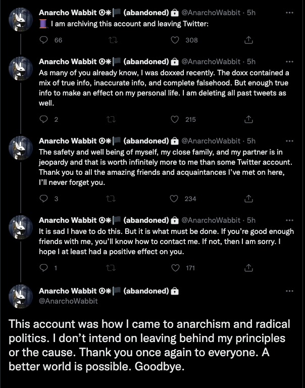 Left wing extremist who goes by 'AnarchoWabbit' Previously used names ChairmanWabbit and Portalpie112 On Portalpie112 he posted his first name (isaac) https://web.archive.org/web/20200620044948/https://twitter.com/Portalpie112/status/1274202503052062721 and info on his dad (a sociology professor, last name reynolds) - https://web.archive.org/web/20200529211509/https://twitter.com/Portalpie112/status/1266467808012976129 and where he lived (kimberly Idaho) - https://web.archive.org/web/20200401004621/https://twitter.com/Portalpie112/status/1245143301482659840 This brings us to Isaac Reynolds, Links below https://www.linkedin.com/in/isaac-reynolds-82bb081aa/ https://www.kimberly.edu/khs/student-editorial-its-time-give-school-news-broadcasts-your-attention https://www.facebook.com/isaac.reynolds.1441 He's posted screenshots that were lazily edited that match the avatar of the FB account as well (included in pics). Facebook likes indicate he may be a part of SRA. Loves to talk shit and imply/threaten nationalists with violence, which is fucking hilarious when you see his pic in an article desperately asking high schoolers to watch the morning announcements new pics - he confirmed the ID on his twitter. "Shitty infosec" = posting a youtube video of your dad ?? nah dude that's just retarded new pic - he's archived his account and is leaving twitter thanks to my ID. GNLS - Idaho fren Partial archive of 10,000 tweets from AnarchoWabbit - https://antifawatch.net/DeletedTweetsFiles/AnarchoWabbit.html