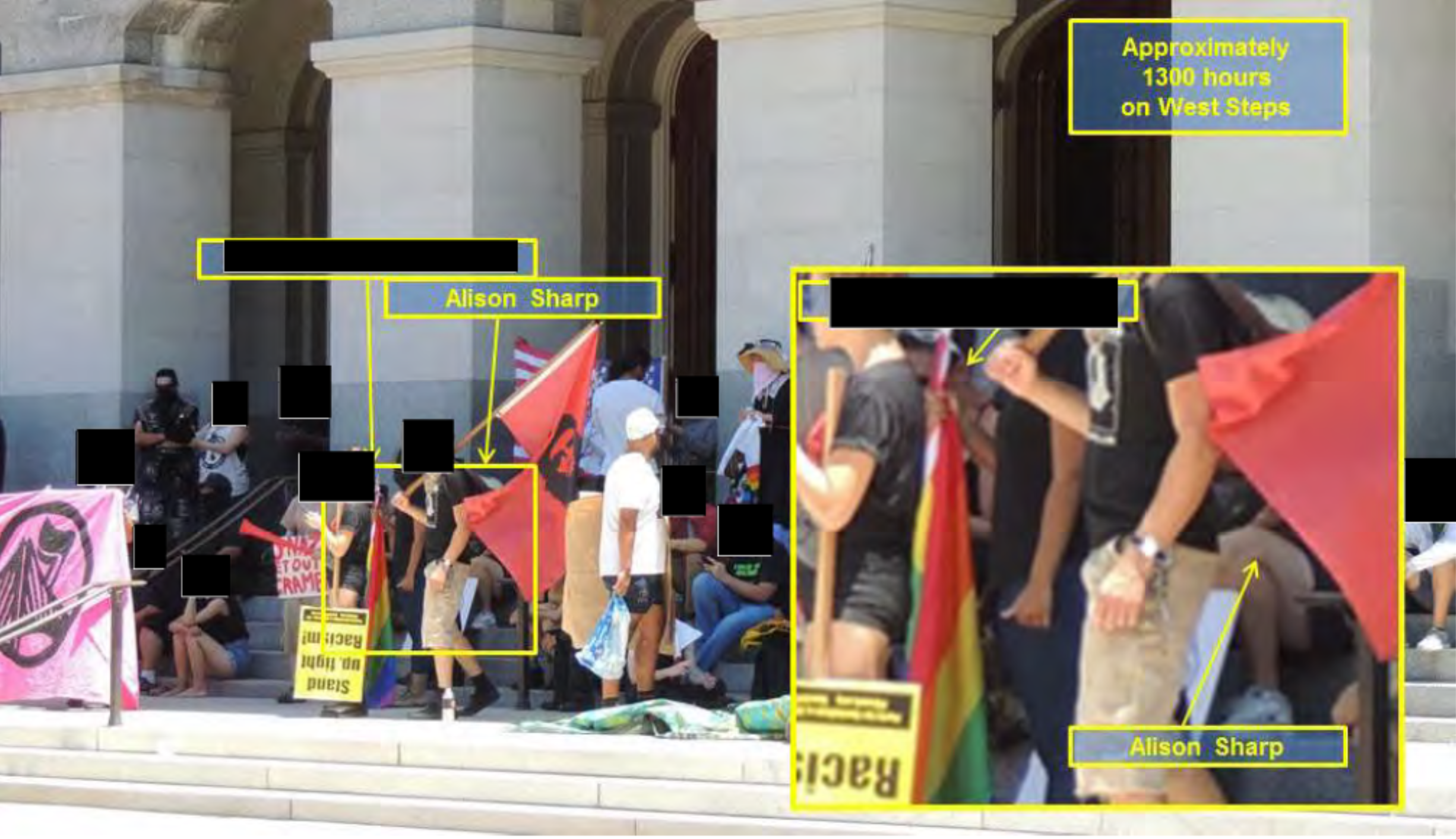 According to a 2016 criminal investigation by the California Highway Patrol recently obtained by the William McKinley Institute, Alison L. Sharp ""arrived at the California State Capitol to support a planned action to deny the Traditionalist Worker Party (TWP) from assembling and speaking at their event." Birthdate: 5/12/1973 https://wmkinstitute.com/chps-2000-page-report-on-2016-sacramento-capital-anti-white-antifa-terrorist-attack/ https://wmkinstitute.com/chp-helicopter-footage-of-the-2016-premeditated-anti-white-attack-in-sacramento/ https://wmkinstitute.com/the-torch-antifa-network-the-anarcho-terrorist-syndicate/