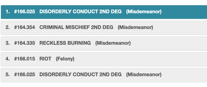 https://kval.com/news/local/eugene-pd-several-arrests-made-from-riot-during-last-weekend-of-may James Bradley Blaylock, age 23, of Eugene: Riot, Disorderly Conduct 2 (two counts), Criminal Mischief 2, Reckless Burning