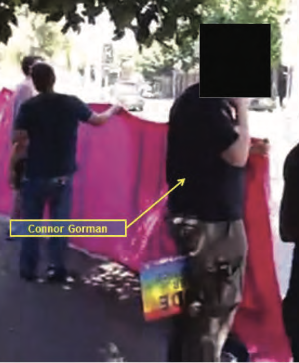 According to a 2016 criminal investigation by the California Highway Patrol recently obtained by the William McKinley Institute, Connor Thomas Gorman ""arrived at the California State Capitol to support a planned action to deny the Traditionalist Worker Party (TWP) from assembling and speaking at their event." Birthdate: 3/16/1991 https://wmkinstitute.com/chps-2000-page-report-on-2016-sacramento-capital-anti-white-antifa-terrorist-attack/ https://wmkinstitute.com/chp-helicopter-footage-of-the-2016-premeditated-anti-white-attack-in-sacramento/ https://wmkinstitute.com/the-torch-antifa-network-the-anarcho-terrorist-syndicate/