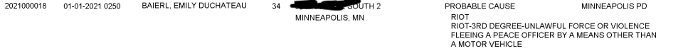 Arrested as part of the 2021 New Years Minneapolis 'jail support' riot. Pic of arrest log attached