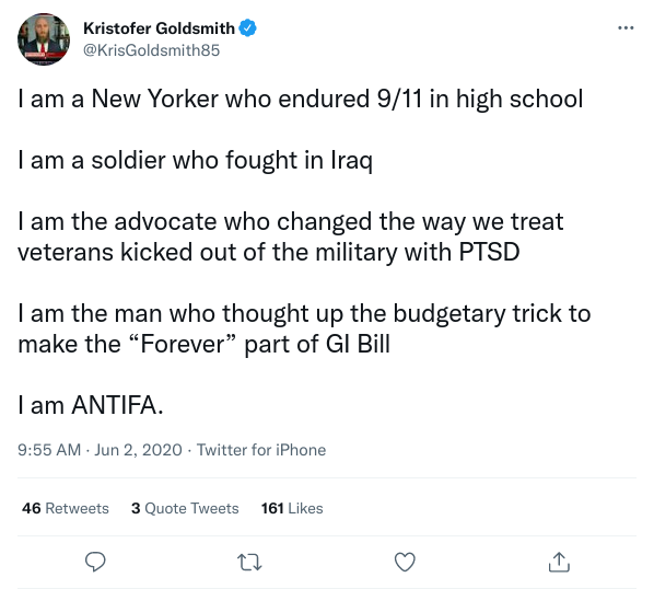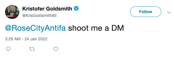 Kristofer Goldsmith, is a military veteran that seems to run multiple operations focusing on rightwing "extremism", "misinformation", and regularly boosts content from Antifa extremist groups on his feed [0]. Patriot Front also seems to live rent free in his head if you scroll his Twitter feed. His current operation is called Taskforce Butler [1], though also heads a firm called Sparverius. The current status of Spaverius is unknown. Goldsmith is claimed to be a Senior Fellow at Human Rights First [2]. The Human Rights First Innovation Lab seems to have a partnership with his nonprofit Taskforce Butler [3], additionally the Human Rights First Innovation Lab seems to have a partnership with the SPLC [4], which is known to hire Antifa extremists as researchers. In short there is no debate on Goldsmith being Antifa he will tell you himself [5]. [0] https://archive.ph/79TUW https://archive.ph/KffL8 He "falsely" Confessed To committing war crimes [6] to push anti-war activism [1] https://archive.ph/HtwKB [2] https://archive.ph/gNxky [3] https://archive.ph/TwuxQ [4] https://archive.ph/ME4kY [5] https://archive.ph/Ye3M8 [6]https://dailycaller.com/2019/04/24/veteran-kristofer-goldsmith-war-crimes/ This report could use some more biographical details, though this covers the basics. https://www.ar15.com/forums/general/Ex-military-builds-snitch-institute-to-purge-military-of-conservatives/5-2464450/ https://www.revolver.news/2021/06/bishop-garrison-dangerous-sidekick-kris-goldsmith-exposed/