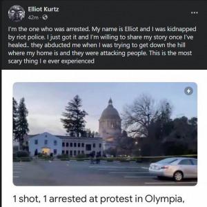 https://www.facebook.com/elliotolympia https://mynorthwest.com/2364119/arrest-olympia-protest-dispersal https://yourdaddyjoey.com/Research/Stephen-Christopher-Kurtz/#wbs1 Kurtz, Stephen Christopher (W /M/42) Arrest on chrg of 1) Omc Assault (M) 2) Failure To Disperse (M)