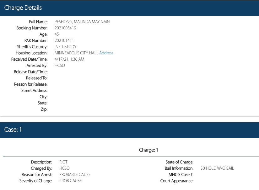 Arrested during the Brooklyn Center (Minneapolis) Minnesota Riots between 4.12 and 4.17