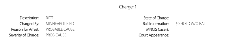 https://en.wikipedia.org/wiki/2020_Minneapolis_false_rumors_riot https://www.facebook.com/CrimeWatch1stPct/posts/partial-list-of-arrested-parties-overnightthis-is-all-public-information-the-inf/1965625946906966/
