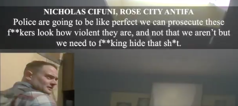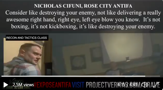 Rose City Antifa https://www.bitchute.com/video/VLR76_e_koE/ https://twitter.com/JamesOKeefeIII/status/1268564733264830467 Nicholas Vincent Cifuni (DOB: 03/21/86). The Antifa social network analysis conducted by an unknown group in 2018-2019 shows he's connected to multiple factions within Rose City Antifa. He worked as a bartender at The Crown in Portland and may still be employed there. Cifuni as of 2021, he was living in the Portland suburb of Aloha, Oregon. https://archive.vn/jTS4c Cifuni appeared in undercover video taken by an infiltrator giving a block of instruction to Rose city Antifa on how to gouge someone's eyes. Evidently the class was on "Recon and Tactics" . Cifuni should be classified as an organizer and tactical leadership.