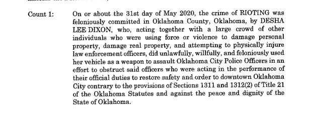 https://www.documentcloud.org/documents/6988651-Ruffin-Ortiz-Davis-Hayhurst-Dixon-Ok-State-Court.html https://oklahoman.com/article/5665507/protesters-charged-with-terrorism-rioting-assault Charged with rioting for May 31st events