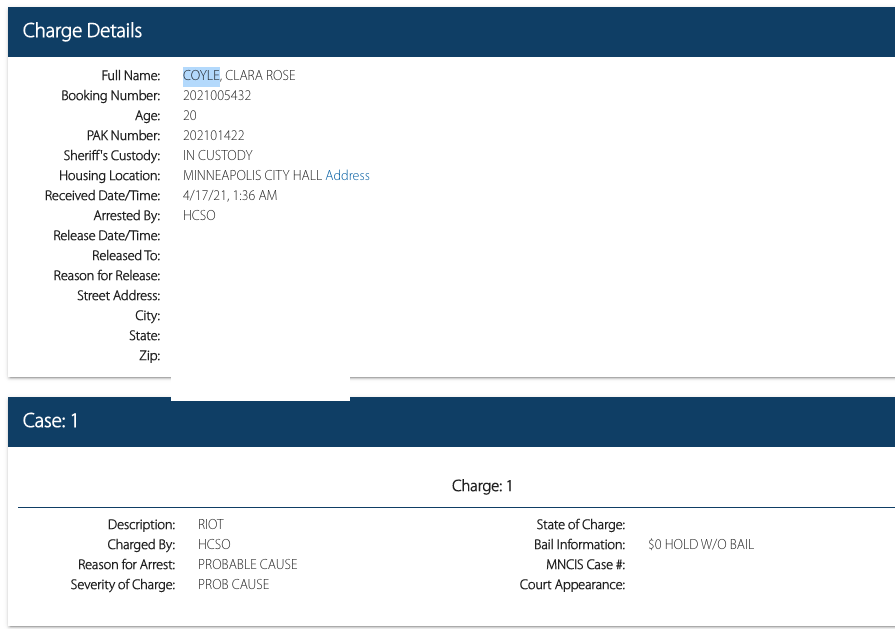 Arrested during the Brooklyn Center (Minneapolis) Minnesota Riots between 4.12 and 4.17