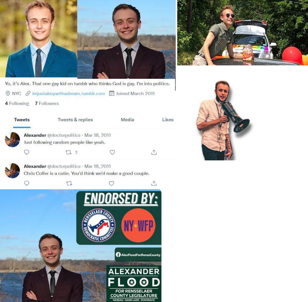 LGBT antifa leader in Albany, NY/Capital District, NY. Has shown up at several BLM rallies and protests near Troy NY and Rensselaer County, and started an altercation with blue lives supporters/local Proud Boys chapter too. And is a Marxist. DOB: 06/02/95. He's worked in left-wing politics his entire life. Flood is currently Director of Communications for NY State Assemblywoman Patricia Fahy. Flood holds a BA in history and poli-sci from SUNY-Albany. He ran for the Rensselaer County legislature but he appears to have lost. His parents are both civil servants. He moved out of his parents house in the quaint village of Castleton on Hudson a year ago. Perhaps they kicked him out of the basement? Nevertheless, he's believed to still live in the Albany area. https://twitter.com/AlexFloodForNY https://twitter.com/doctorpolitics (Inactive)