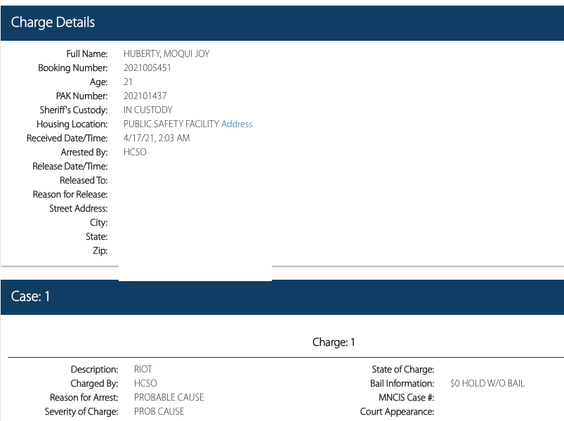 Arrested during the Brooklyn Center (Minneapolis) Minnesota Riots between 4.12 and 4.17