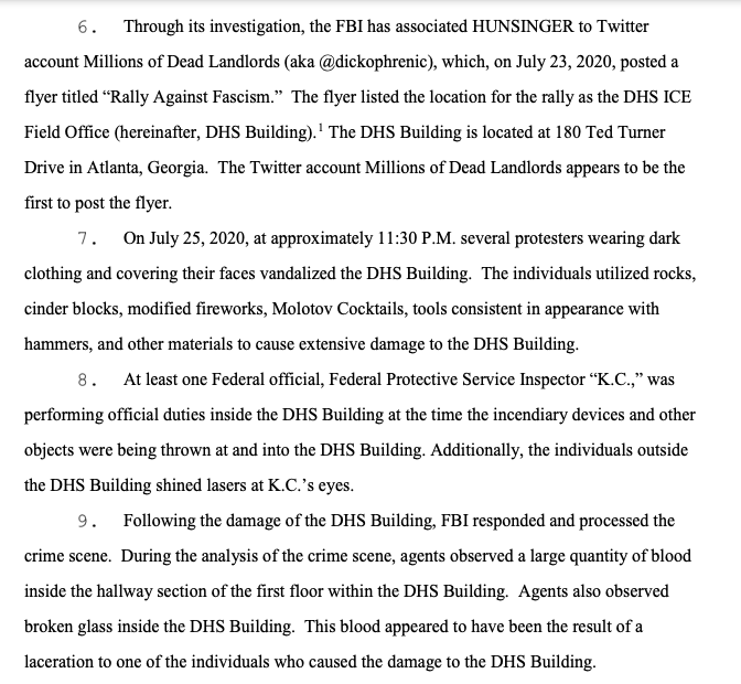 Richard Hunsinger aka "Millions of dead landlords" a writer for Tankie Communist blog "Cosmonaut" Federally charged with damaging building by fire, assault/impede federal officer, and destruction of gov property from July 26th ICE facility attack. The attack was done in solidarity with #Portland according social media/news. Caught primarily due to him getting cut while making his way in/out of the building then going to the hospital. Kathryn Richards is (@raisin_kiss) who is now running the @DefendRichard thing https://www.courtlistener.com/docket/18242406/united-states-v-hunsinger/