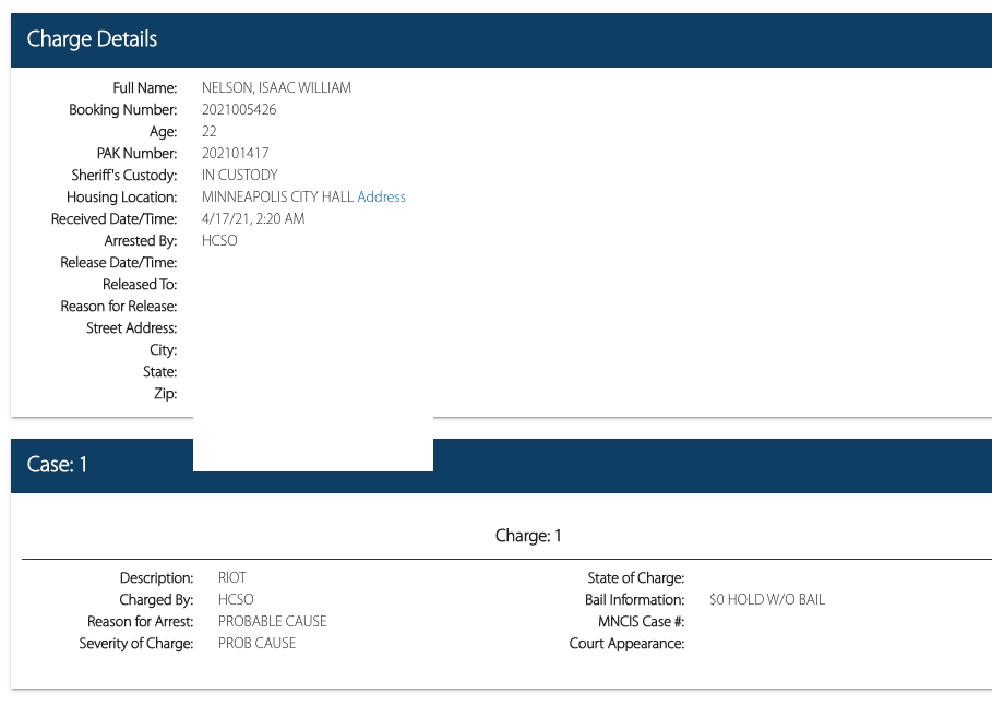 Arrested during the Brooklyn Center (Minneapolis) Minnesota Riots between 4.12 and 4.17