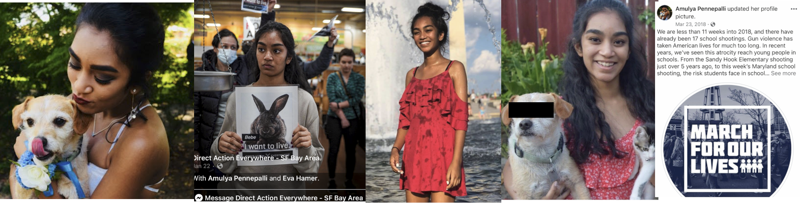 (Born Dec. 2000) she's a member of the radical animal rights group Direct Action Everywhere (DxE). Her mother Radhika (https://antifawatch.net/ViewReport/3801a0f4) is also a member. The younger Pennepalli participated in at least one DxE led disruption at a Sprouts grocery store in 2023 which was held in honor of DxE's tenth birthday. When she was in high school she participated in an anti-gun walkout. Pennepalli studied illustration and animation at San Jose State. She lives with her parents in Fremont. See pic for documentation.