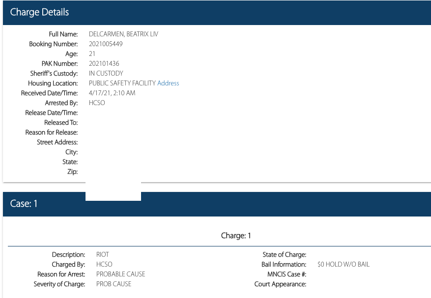 Arrested during the Brooklyn Center (Minneapolis) Minnesota Riots between 4.12 and 4.17