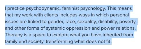 A therapist that practices psychodynamic feminist psychology. Bailed out Pittsburgh rioter Nique craft. 10k in cash