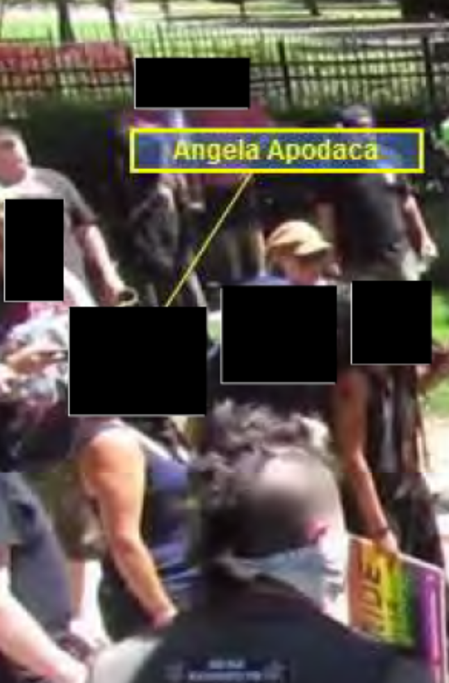 According to a 2016 criminal investigation by the California Highway Patrol recently obtained by the William McKinley Institute, Angela Marie Apodaca ""arrived at the California State Capitol to support a planned action to deny the Traditionalist Worker Party (TWP) from assembling and speaking at their event." Birthdate: 5/25/1970 https://wmkinstitute.com/chps-2000-page-report-on-2016-sacramento-capital-anti-white-antifa-terrorist-attack/ https://wmkinstitute.com/chp-helicopter-footage-of-the-2016-premeditated-anti-white-attack-in-sacramento/ https://wmkinstitute.com/the-torch-antifa-network-the-anarcho-terrorist-syndicate/