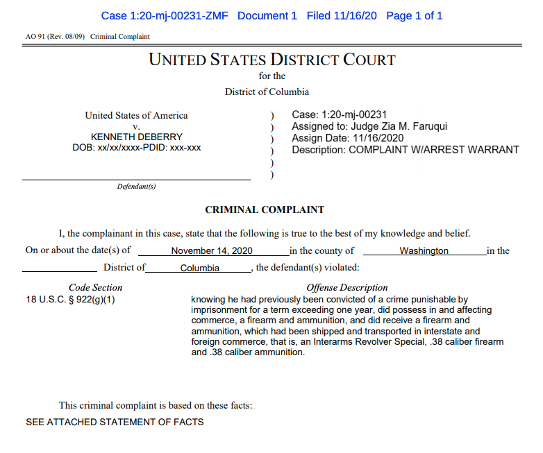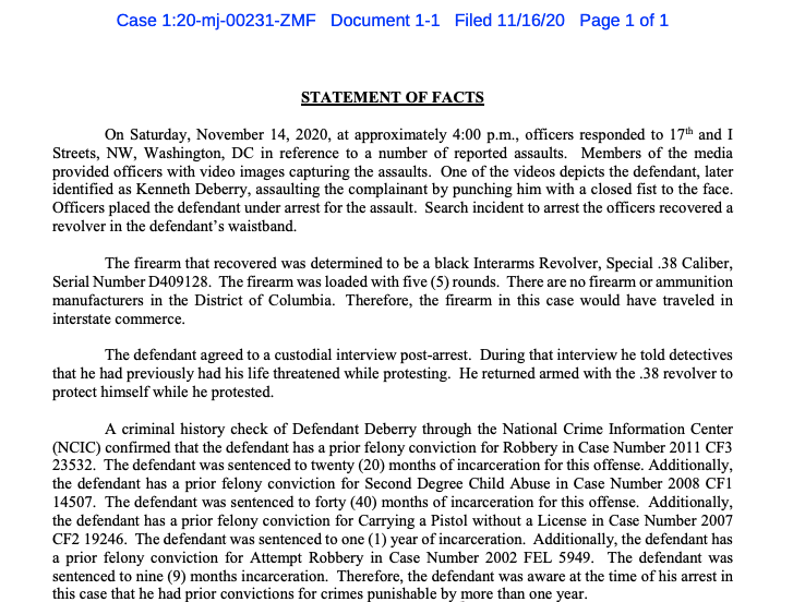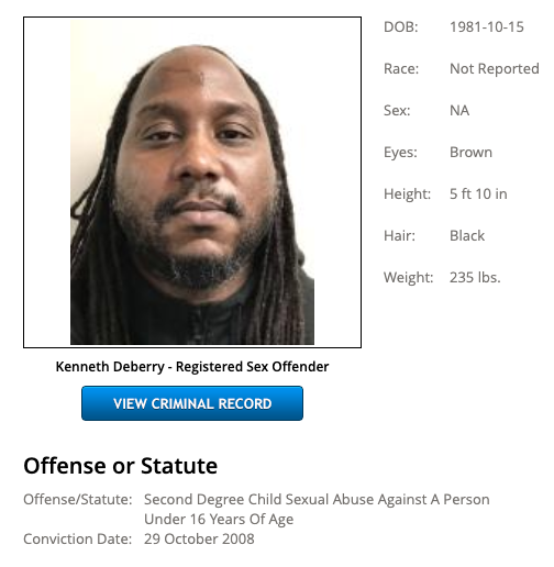 Kenneth Deberry was arrested yesterday during #DCProtests for aggravated assault, pistol w/o license, felon w/ firearm, and disorderly inciting violence He's a registered sex offender (2nd Degree Child Sexual Abuse Against A Person Under 16 Years Of Age) https://archive.vn/107Zx https://www.courtlistener.com/docket/18636489/united-states-v-deberry/